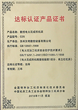 火花機(jī)G達(dá)標(biāo)認(rèn)證產(chǎn)品證書