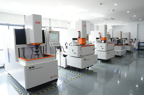 應(yīng)用中心占地面積100多平方米,配備了4臺先進的電加工設(shè)備,這里集中展示了蘇州漢奇的明星產(chǎn)品,包括全閉環(huán)直線電機中走絲線切割機床HQ-400FL,五軸數(shù)控四軸聯(lián)動全數(shù)控伺服中走絲線切割機床HQ-400FU,以及2020年成功研發(fā)并量產(chǎn)的全數(shù)控升降液槽鏡面電火花機床HQ-U40。